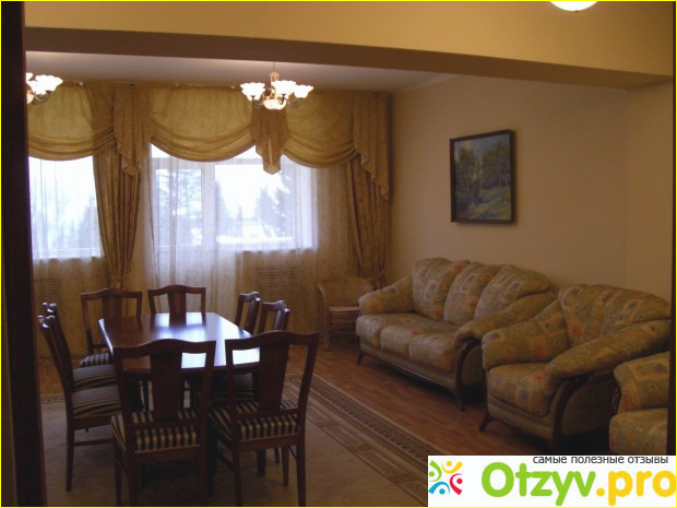 Номера от стандарта до люкса, все на выбор и кошелек гостей. Питание трехразовое, по заказному меню. В санаторий можно приезжать с детьми, начиная с 3-хлетнего возраста. Отдельно имеется лечебный корпус, где проводятся различные процедуры и ведут прием врачи.