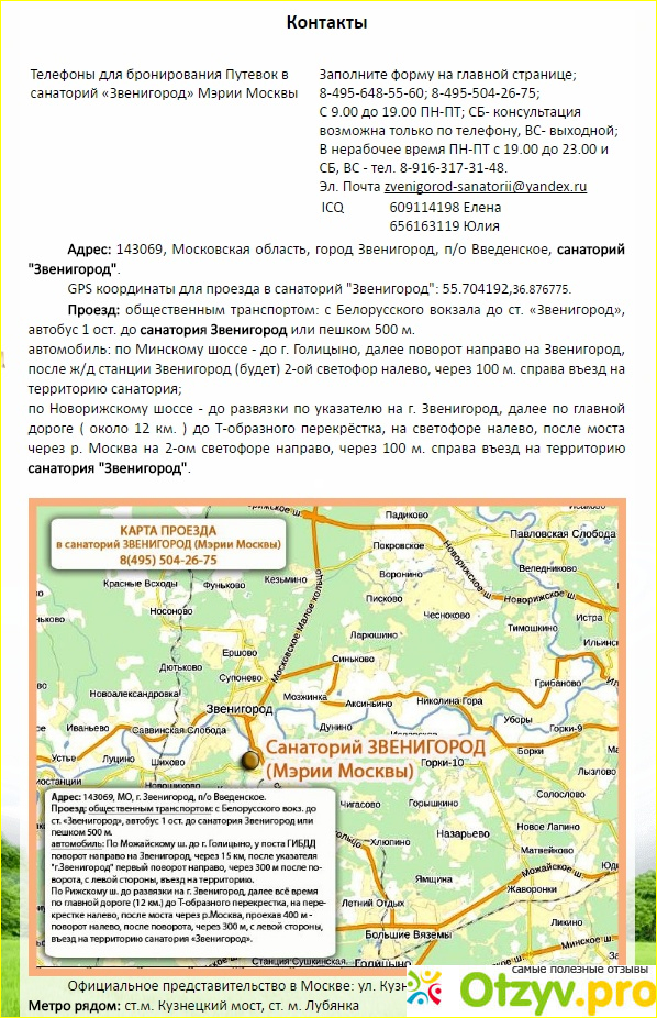 Тут можно узнать не только номера телефонов, но и электронную почту и аську. Это очень удобно. Ведь никогда нельзя заранее знать какой из видов связи понадобится. Тут же находится и схема проезда до санатория.