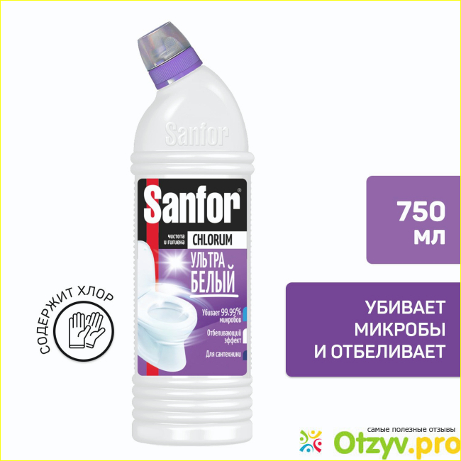 Консистенция средства слегка густая, желтоватая. Я прилагала массу усилий, пытаясь оттереть мочевой камень, но тщетно. Тогда я достала сарму и все получилось за минуту. Конкуренцию по качеству удаления камня с Сармой Санфор ультра белый не выдерживает. К сожалению обещания Санфор выполняет частично, на дезинфекции они заканчиваются. Больше не куплю такое. Чистить и задыхаться не входит в мои планы.