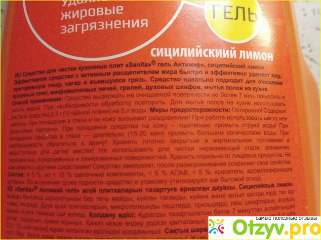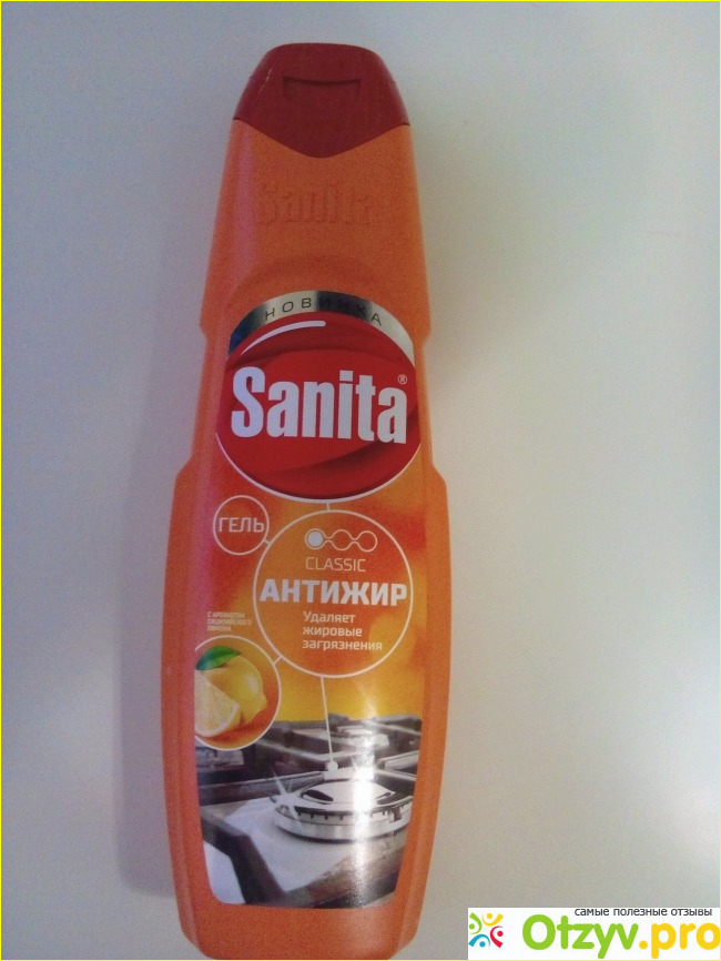 Я остановила свой выбор на Средстве для чистки кухонных плит "Sanita" гель Антижир" с ароматом сицилийского лимона.