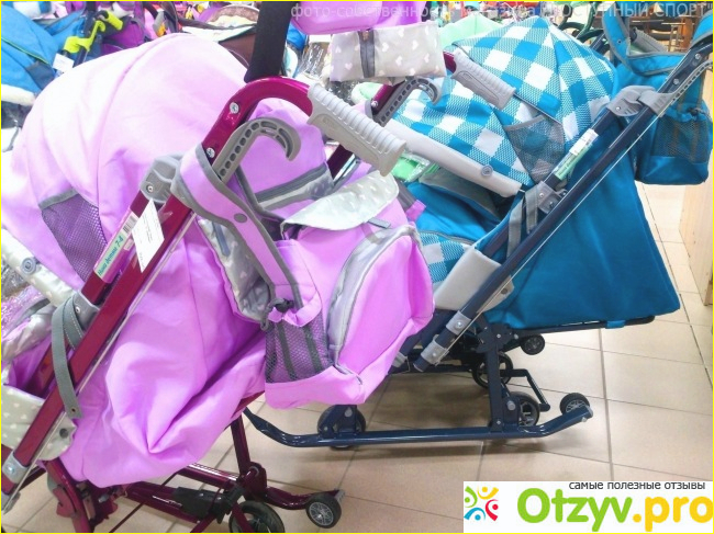 Данные санки больше похожи на коляску. Но настоящая коляска не сможет так комфортно передвигаться по снегу, как санки Ника. У данный санок имеются и полозья, и колеса.