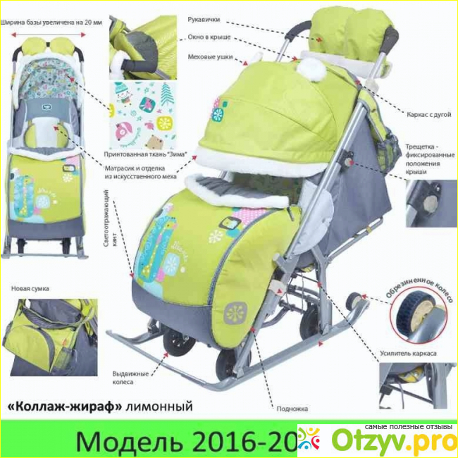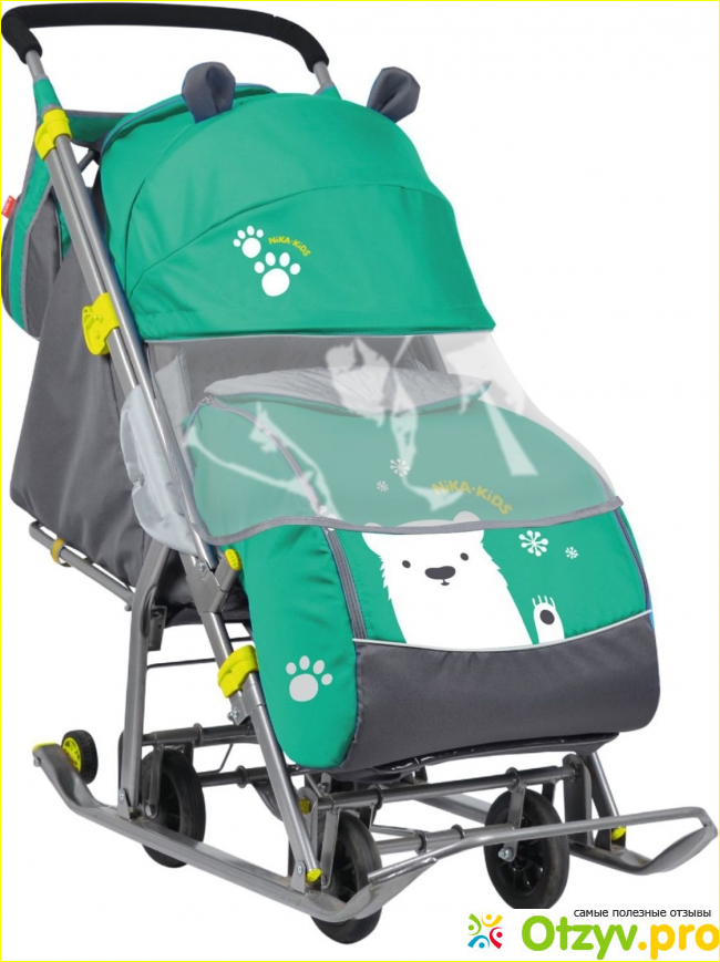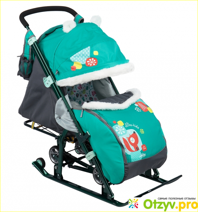 А приятным бонусом в такой модели является удобная и достаточно вместительная сумочка. В нее можно положить все необходимые вещи, которые понадобятся во время прогулки ребенку и маме. В принципе за такие небольшие деньги модель достаточно интересная. В ней есть все необходимое. Поэтому такие сани однозначно порадуют не только маму, но и малыша.