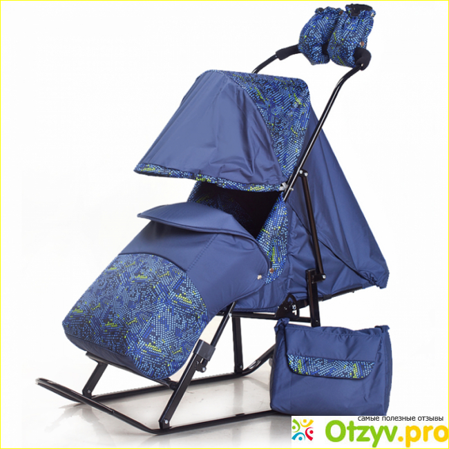 По мимо всего прочего производители так же не забыли и про самих мам и на этих санках есть специальные варежки для того, чтобы руки не мерзли, которые цепляются к их ручке. А так же в наборе есть еще и специальная утепленная сумочка. Она хоть и маленькая, но все самое необходимое в нее вполне помещается.