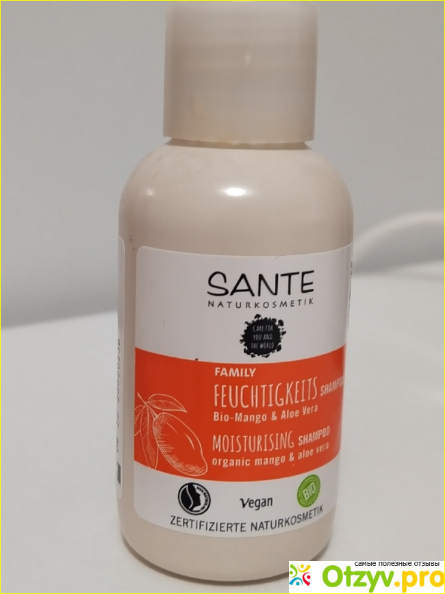 О шампуне Sante довольно много положительных отзывов, как в отзовиках, так и в интернет-магазинах. Сам шампунь не из дешевых (около 600 рублей за 250 мл). Произведен в Германии и представлен как натуральный продукт. Запах утонченный, фруктовый, довольно приятный. Я взяла мини-версию, для знакомства с брендом.
