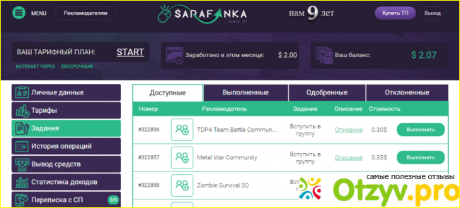 Уже давно я не работал на Сарафанке, но помню, что передо мной еще на тот момент никаких ограничений в плане выполнения заданий не было и я могу выполнять их один за другим. Но вот большой минус - это подтверждение задания. После каждого выполнения необходимо было делать скриншоты и загружать их на сайт, при этом нужно было время, чтобы подтвердить выполненное задание. А теперь я обратил внимание, что ставка за выполнение задания довольно приличная, она в долларах.