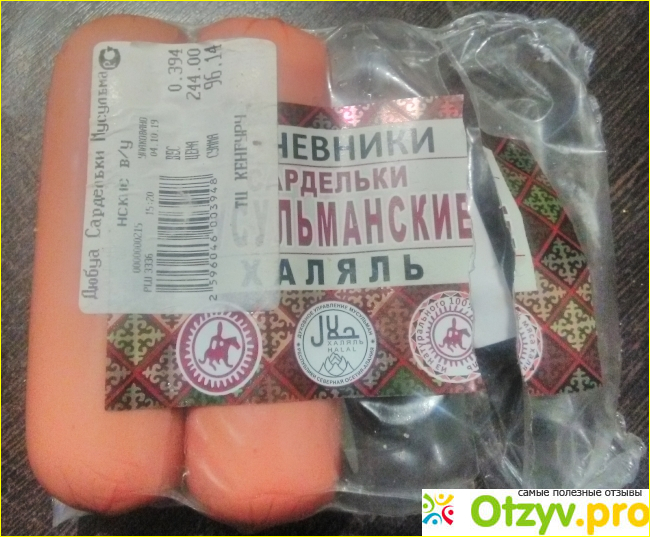 Продаются сардельки Мусульманские у нас в республике во многих магазинах, состав у них адекватный для своей цены, худшее что в нем нашла загустители, но без них никак. Стоимость для подобной продукции средняя, сардельки и сосиски стоят значительно дешевле говяжьих и изготовленных из баранины.