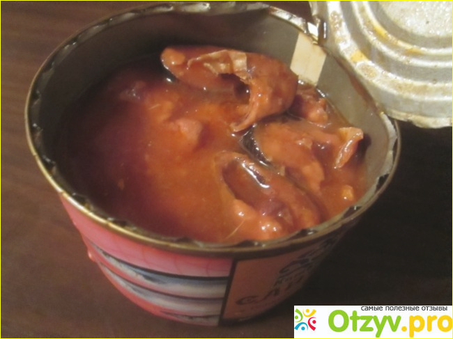 Открыл, вся рыба скрыта под соусом, цвет и запах, по-моему, нормальные