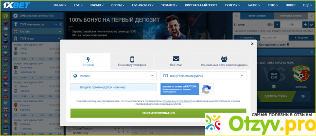 Регистрация простая, возможна даже в один клик: выбираете страну, валюту и хоп! Готово все, делайте ваши ставки, господа.