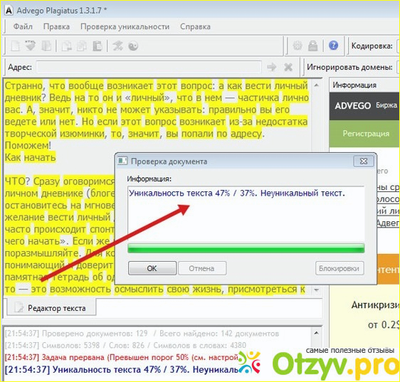 Адвего предоставляет свою программу, которая предоставляется бесплатно. Но, нередко возникают ситуации когда эта программа в разное время показывает разные проценты уникальности. Кроме того, некоторые заказчики проверяют уникальность другими программами, данные которых не совпадают с адвеговскими. Если заказчик лоялен, он дает время на переделку. Встречаются такие, что сразу заносят в черный список и не оплачивают. А времени иногда на такую работу уходит немало.