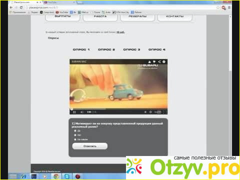 На счет сайта PlaceOpros.com то это один с тех уловок. Как обещано то вы просто смотрите видео и за каждый правильный ответ получаете 40 рублей. Как то сумма достаточно приличная. И что бы владельцу сайта заработать на такой системе то как то очень сложно и почти не реально что то солидное поиметь с этого всего. Но теперь берем все это с другой стороны. А это значит что всплывает такой вопрос как же он зарабатывает на том сайте? Да легко. Вот за каждый просмотр видео что смотрят пользователи то разработчику этого сайта идет какой то денежный процент от просмотров. Я думаю что не маленький).