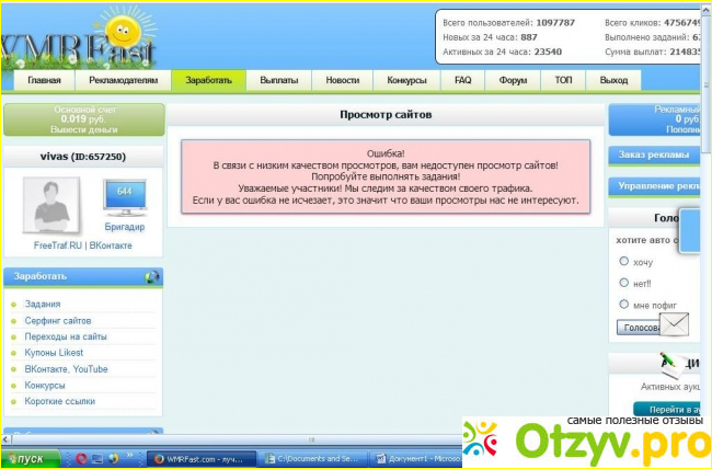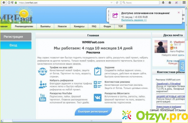 Сегодняхочурассказатьосайтедлязаработкавинтернетенакликах, просмотрахрекламы, выполнениизаданий - wmrfast.com.