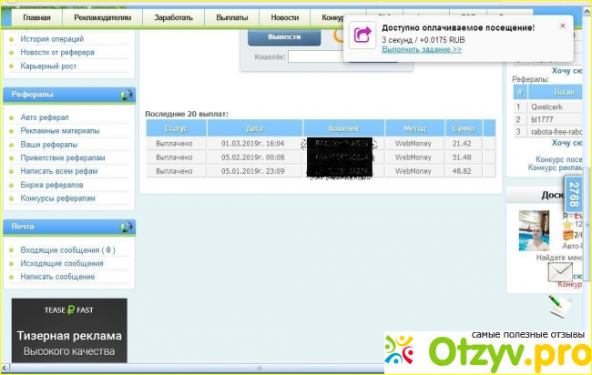 Читая отзывы о сайтах, на которых пыталась зарабатывать, я видела резко отрицательные отзывы о wmrfast.com, но считала, что такие отзывы пишут те, кому просто не удалось заработать. Я попробовала, вывела в самом начале какую-то мелочь, чтобы попробовать, получится ли что-нибудь – и решила пробовать далее.