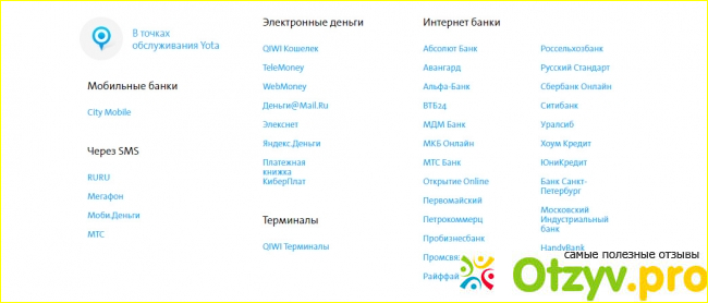В разделе "Оплата" можно произвести пополнение баланса. В качестве основного источника предлалгает воспользоваться банковской картой. Помимо этого предлагается масса альтернативных вариантов: мобильные банки, посредством СМС, электронные деньги, терминалы, интернет банки.