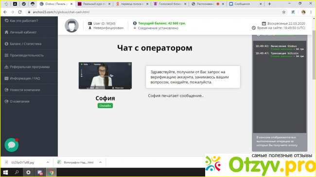 Потом меня попросили связаться с оператором появилась кнопка. И не поверите запросить перевести деньги. Конечно же сумму которую просят не сравнитсяс суммой которая на балансе. И как вы думаете Можно ли за 3 часа лёгкой регистрации заработать 42000 ничего не делая при этом? Интересно как этот сайт держится на плаву. внизу я оставляю Screen данного сайта. Пожалуйста, будьте внимательны, не попадайте в лапы мошенников. Не переводите деньги на неизвестные вам сайты. И ещё если кто-то знает хороший сайт заработка в интернете пожалуйста Поделитесь ссылкой. говорю сразу Oriflame Эйвон и другая косметика и всё что с этим связано не интересует.