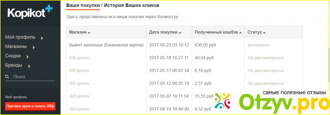 Чтобы не забывать получать кэшбэк со своих покупок в интернете , удобно установить расширение и через него заходить в копикот , после чего вы будете перенаправлены на сайт интернет-магазина. После оплаты и получения товара или услуги, продавец подтверждает вашу покупку и вам только остается дождаться всяких формальностей, после чего на ваш заветный счет упадут ваши сэкономленные денежки. Путей вывода с сайта кэшбэка значительное множество, на любой вкус и возможности, можно вывести на банковскую карту, на электронный кошелек или на баланс мобильного телефона. В последнее время сайт постоянно проводит всевозможные акции. Стоит подписаться на рассылки сайта и на вашу электронную почту будут приходить извещения о всевозможных акциях. Считаю, что сайт-хороший сервис с огромным количеством магазинов по экономии своих кровно заработанных денежек!