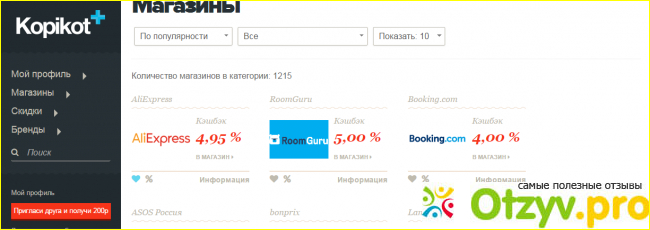 Интерфейс сайта простой, разобраться не сложно. На сайте представлено огромное количество разнообразных интернет магазинов. у каждого магазина свой процент или бонус выплаты кэшбэка.