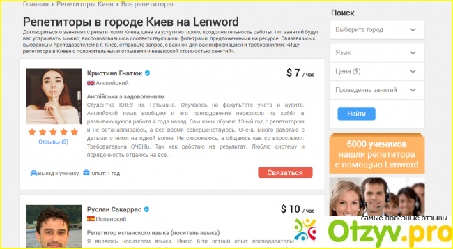 Также Вы можете уточнить, где будут проходить уроки (у Вас дома или у репетитора). Советую просмотреть отзывы о репетиторе, которого собираетесь выбрать и заглянуть в раздел Документы, чтобы убедится в его надежности и компетентности. Есть еще возможность выбрать skype-репетитора верхняя позиция в разделе город или задать вопрос на сайте. Лично я при выборе руководствовалась ценой, и полностью довольна своим решением.