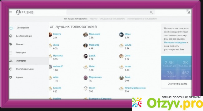 В разделе "эксперты" посмотреть зарегистрированных пользователей сайта. И чем вы больше будите толковать чужие сновидения, тем у вас будет больше начисляется баллов и вы можете оказаться в таблице "топ лучших толкователей".