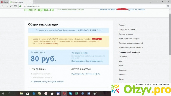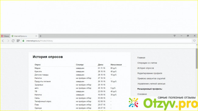 Примерно на 60% присылаемых опросов я отвечаю, за что и получаю деньги. Так, с 1 января 2016 года удалось заработать 745 рублей, но сегодня только 4 ноября.