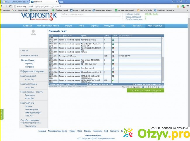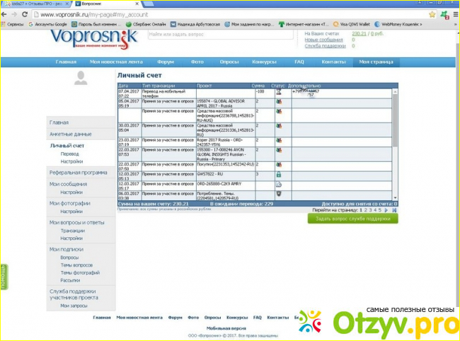 Прошло еще несколько месяцев, я так же продолжала участвовать в опросах. Накопив опять достаточную сумму для вывода, на этот раз я решила их вывести на баланс телефона. Было это 7.04.2017 и знаете что произошло? НИЧЕГО!!! Деньги так и не пришли! Этот сайт мошейники! Очень жаль потраченного на эти опросы времени!!!
