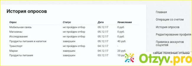Правда, минус я нахожу в том, что можно и не пройти отбор для опроса и тогда никаких рублей вам не начислят. Произойти это может, если вы не внимательно и сумбурно заполняли анкету или же достаточное количество людей вашей категории уже отобрано.