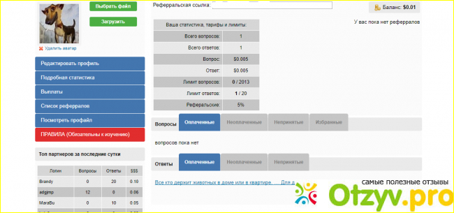 Мне опять предложили пройти регистрацию, оформить профиль, установить аватар. Что я и сделал. По правилам сайта оплата осуществляется в следующем порядке: За хороший вопрос - $0.005. за хороший ответ - $0.005, за короткие(плохие) вопросы/ответы оплачиваться не будут. В общем все ясно и понятно.