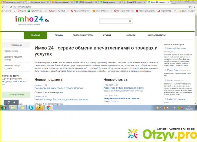 Приветствую всех читателей сайта. В этом отзыве поделюсь впечатлениями о сайте отзывов Имхо 24.