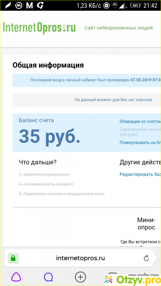 Выводила с этого сайта всего раза два. Очень трудно заработать даже минимальную сумму для выплата. Опросы приходят раза 3 в месяц.
