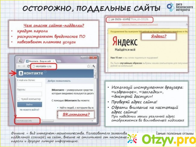 Определить подделку Яндекса довольно просто. Сайт подделку можно определить по признакам, перечисленные далее. На фальшивом сайте будут древние новости, привлечение некими подарками, и, конечно же, "развод" на номер мобильного телефона (а в дальнейшем, не сомневайтесь, и на платную СМС), и, конечно же, традиционно "левый" адрес. Мошенники полностью копируют цветограмму, шрифты и оформление известного поисковик.