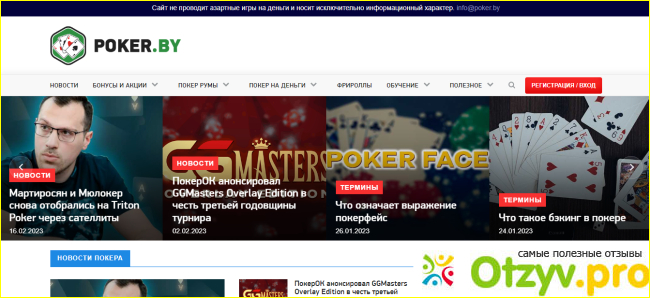 Ошибочно, кто-то может подумать, что этот сайт предоставляет свои услуги в качестве платформы для игры в покер. Но это не так. Платформа работает только в качестве информационного ресурса. На сайте появляются новости из области онлайн-покера и реального покера. Помимо этого, публикуются анонсы серий, а также обзоры различных акций румов. Выходят статьи, посвященные успехам звезд покера и случайных счастливчиков, которые смогли одержать весомые победы. На сайте публикуется самая актуальная информация. С помощью данного ресурса, у любителей покера появляется возможность сравнивать всевозможные платформы, узнать о преимуществах и недостатков сайтов покера, а еще знакомиться с реальными отзывами игроков. Над самим проектом работает команда ярых любителей покера, которая и старается всесторонне разбирать данную сферу, а также помогать изучить рынок покера.