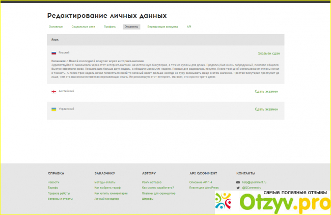 Видела, что некоторые люди писали, что заработать эти 100 рублей почти нереально. Нет, это вполне реально. И экзамен сдается очень просто, сейчас его поверяю за 1-2 дня, максимум 5 дней. При сдаче экзамена достаточно знать элементарные правила русского языка, или другого предложного сайтом.