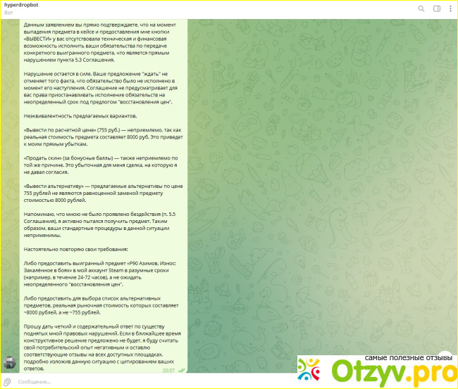Привет! Играю на Hyper-drop уже несколько месяцев, и впечатления в основном положительные. Часто открываю кейсы с разными скинами для CS, и пару раз мне реально повезло! Выпал нож M9 Bayonet, а ещё как-то получил AWP Asiimov — эмоции зашкаливали. Конечно, не всегда выпадают дорогие предметы, иногда можно поймать что-то вроде недорогих наклеек, но это часть игры.
