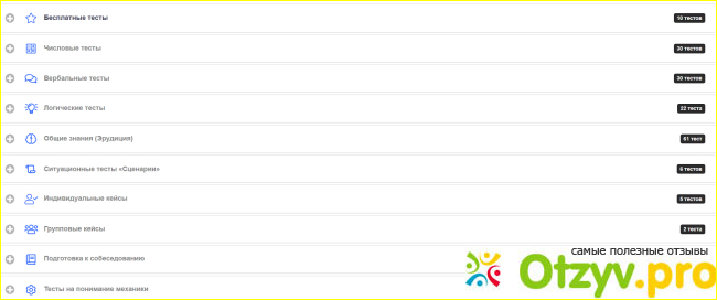 Здесь тесты составляются профессиональными рекрутерами, и в большинстве случаев включают в себя вопросы и задачи, которые в реальном времени предлагаются соискателям в больших организациях. Для этого нужно выбрать правильное направление, которое вам могут предложить. Здесь, кстати, предлагаются числовые тестирования, вербальные, логические и даже по иностранным языкам. Рассмотрим всего понемногу…