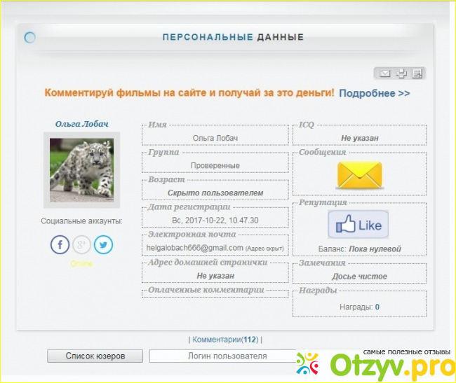 Данный сайт смело можно отнести с списку честно платящих. Суть заработка на данном сервисе состоит в том, что за написание комментариев к фильмам Вам заплатят рубль за каждый из них. Правила сайта очень просты: за 170 символов авторского уникального текста - получаем 1 рубль.
