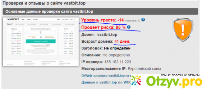 Попал на этот сайт и прочитал информацию о его супер обещаниях, а потм сь=тал искать информацию о нем, так как на мой наметанный взгляд, практически сразу, в голову закрадываются очень устойчивые мысли о том, что это лохотрон. Уже на первый взгляд, крайне пугает императивная формулировка данного сайта, которая подталкивает тебя к обреченности, а именно: "стоит ли влаживать деньги в "Vastbit"!