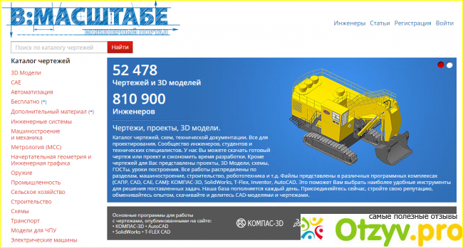 Вмасштабе представляет из себя сайт с большим количеством чертежей и проектов. Сайт не раз спасал меня как студента, мало где можно найти работу нужного мне типа и формата файла. Интерфейс прост и интуитивно понятен в использовании, единственное было трудно понять где находится тех.