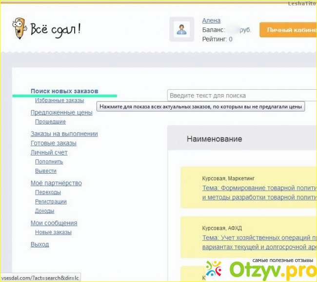 Я очень довольна работой сервиса vsesdal.comи могу порекомендовать его всем студентам, кто нуждается в помощи или людям, которые ищутдополнительный заработок!