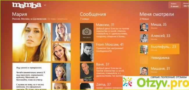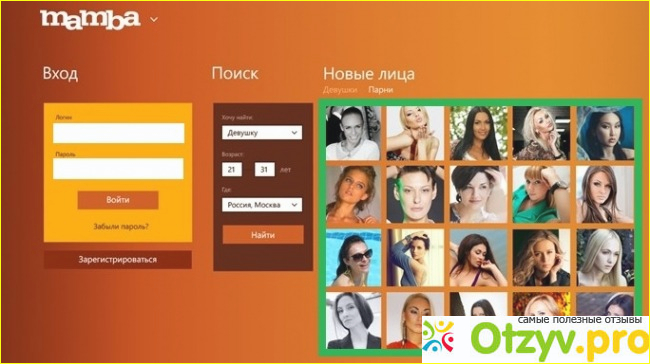 Наверное это самый популярный и известный сайт знакомств. Народу там тусуется просто масса. Но и извращенцев хватает. Не успеешь там зарегистрироваться и разместить свои фотографии, как тут же начинают писать всякие мужики с непристойными предложениями. Причем фотографии все я размещала приличные и в анкете указывала, что ищу исключительно серьезные отношения, с целью создания семьи. Удобно, ч то на Мамбе есть геолокация и можно выбирать из людей живущих поблизости, чтобы потом не мотаться к любимому на другой конец города)