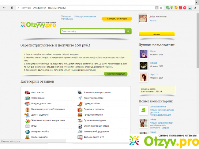 Главное для меня на сайте Отзыв.про - это честность и отсутствие накрутки. Здесь нет необходимости заводить друзей или смотреть чужие отзывы, чтобы мои отзывы были прочитаны. Этот сайт действительно востребован и позволяет заработать на написании отзывов.