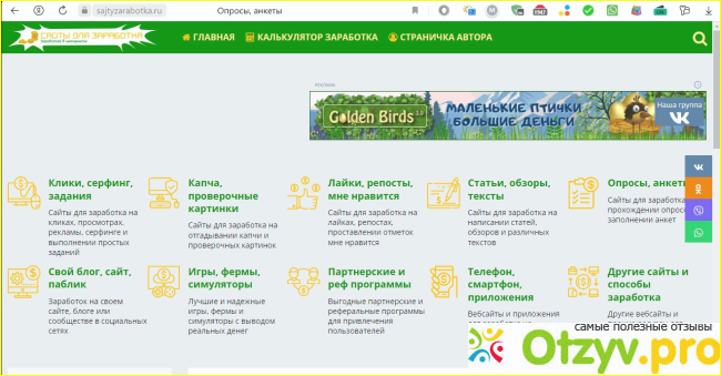 Этот сайт предоставляет информацию о сайтах и приложениях для заработках. Вся информация представлена в виде статей и видео, также есть комментарии реальных пользователей.