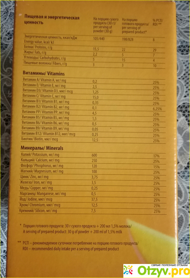 При этом наш организм насыщается нужным количеством витаминов, которых в 1 порции 12 штук, 11 минералами, комплексом необходимых ферментов, способствующих быстрому жиросжиганию, волокнами и пребиотиками.