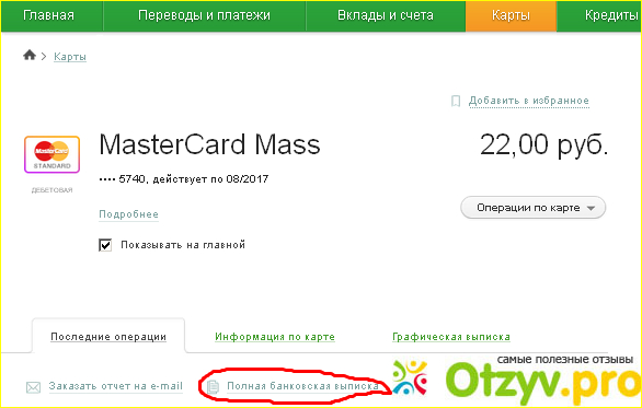 На рисунке изображена карта и остаток по ней. И обведена кнопка Полной выписки.