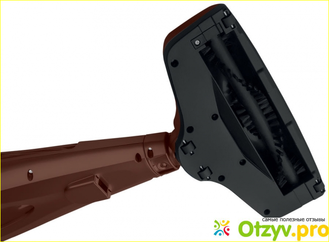 Ручка пылесоса Scarlett SC-VC80H07 очень эргономичная. Кнопка включения на ней находится высоко, так что человек избавлен от нужды лишний раз наклоняться перед включением пылесоса.