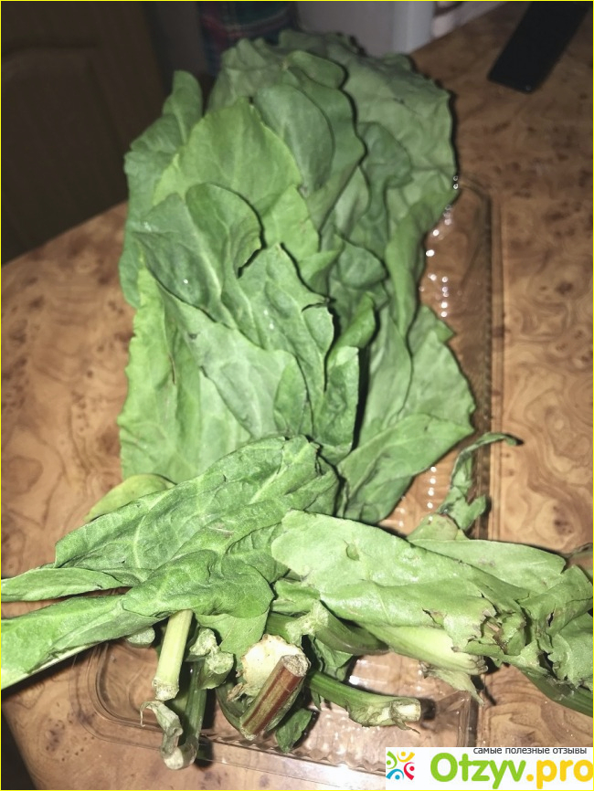 Когда я открыла упаковку, то моей первоначальное впечатление оказалось верным. Щавель оказался не молодой, а вполне зрелый. Листья были большие, а некоторые огромные - больше и длиннее моей ладони. Чтобы их промыть, мне пришлось отделять каждый листочек и мыть со всех сторон. Помимо листьев у щавеля были оставлены и стебли чуть ли не во всю длину. То есть, производитель решил нажиться на неликвидных частях продукта, чтобы добавить вес.