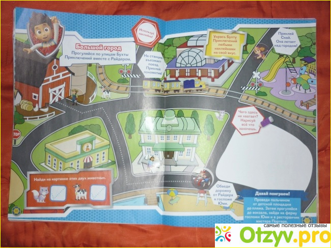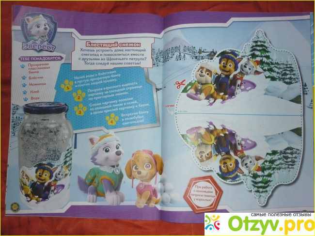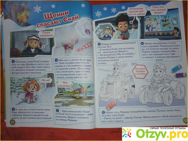 -- в журнале 32 страница, каждая рубрика посвящена каждому щенку. Маршалл, Скай, Рокки, Крепыш, Райдер, Зума, Эверест - мой племянник знает всех. Благодаря этому журналу выучил все их имена, кто что любит, чем занимает и на чем катается.