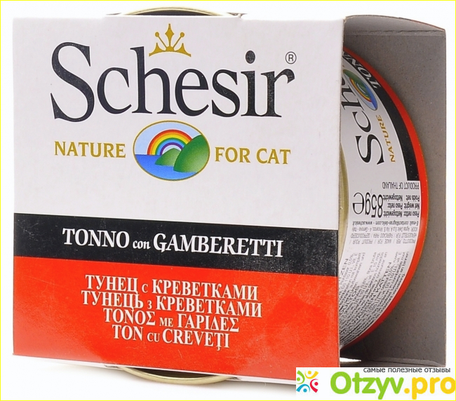 Консервы с тунцом и креветками от Schesir я взяла на пробу в зоомагазине Ветна. Я уже знакома с этим производителем и вполне довольна качеством продукции. Упаковка в стандартном весе 85 гр обойдется в 99 рублей. Довольно дорого, но состав здесь вполне достойный. Это 51% тунца, 6% креветок и питательные добавки. Упаковка стандартная, консервная банка с колечком. Внутри мы увидим кусочки рыбы и креветок в желе. Продукт рассчитан на один раз, но как показала опыт, не все кошки способны доесть общий объем за один раз. Поэтому довольно легко разделить на две порции и убрать для хранения в холодильник.