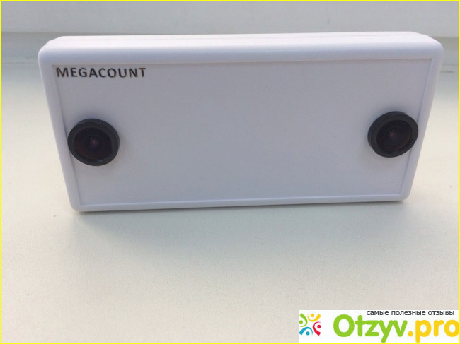 Небольшое устройство белого цвета (можно заказать любого цвета), с двумя небольшими HD камерами. Главный плюс, что не нужно постоянно включенный компьютер, данные отправляются на удаленный сервер, а питание счетчика идет от блока питания, который был в комплекте. Очень простой в установке кронштейн (даже ребенок справится).