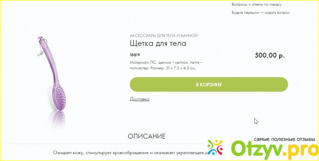 К тому же стоит она не дорого. Постоянная цена на щётку для тела от ORIFLAME 500 руб. Но, периодически проходят АКЦИИ от ORIFLAME и мне она досталась как раз по акции за 280 руб.