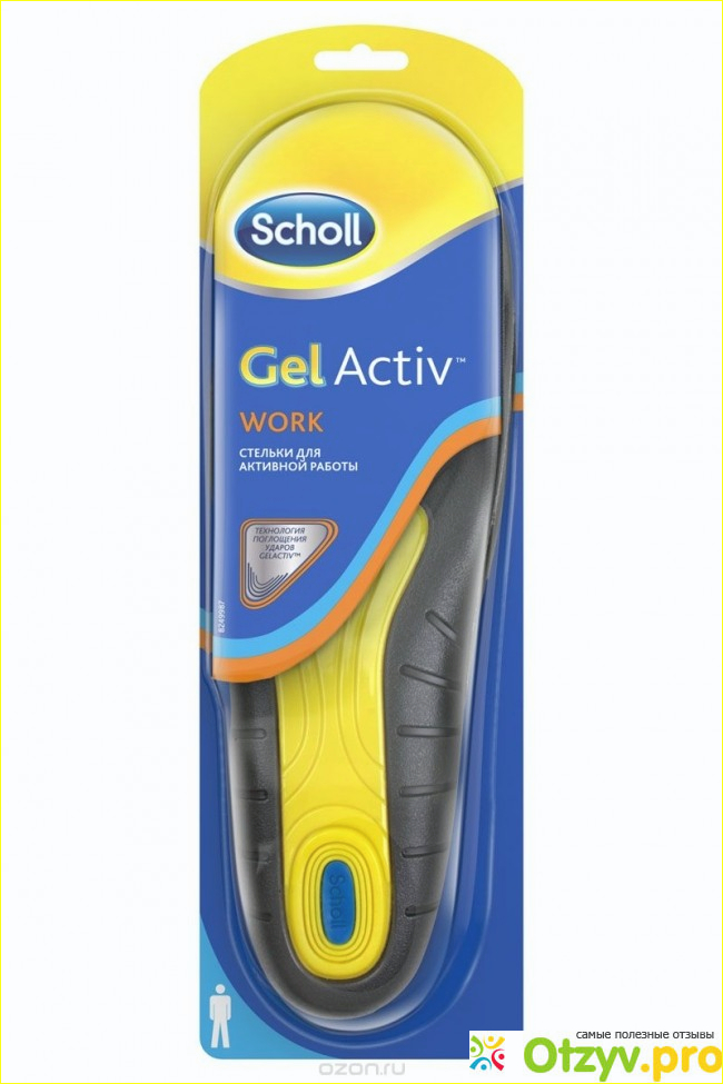 Вечерам после работы довольно сильно болели стопы ног. Мази разные я уже испробовал, эффект все равно быстро проходит. Дочь мне подарила специальные стельки для обуви, называются Шоль Гель Актив Ворк.