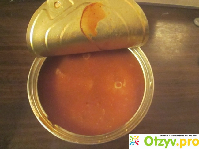 Вскрыл, внутри томатная паста и пара косточек и очертания рыбки видны